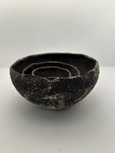 Ces bols sont modelés individuellement, avec une recherche de texture et de forme libre. Ils évoquent la terre brute, la pierre volcanique, ou encore des fragments de nature fossilisée. Chaque pièce est une œuvre en soi.
